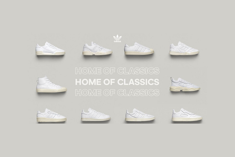 La colección de Home of Classics, no se basa en características de alta tecnología sino en los pilares sencillos e icónicos de la marca: las tres tiras, el cuero blanco y el caucho. La principal protagonista de la colección es la nueva interpretación de las Supercourt que reinventan el tradicional cuero blanco, con exterior y forro de cuero premium y un revestimiento de lino que les confiere un toque extra de emoción.