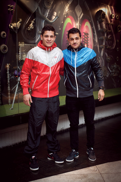 2. El jugador Lautaro Acosta de Boca Juniors junto a Juan Manuel Iturbe de River Plate en la presentación de los nuevos Mercurial Vapor IX en el Dot Shopping.