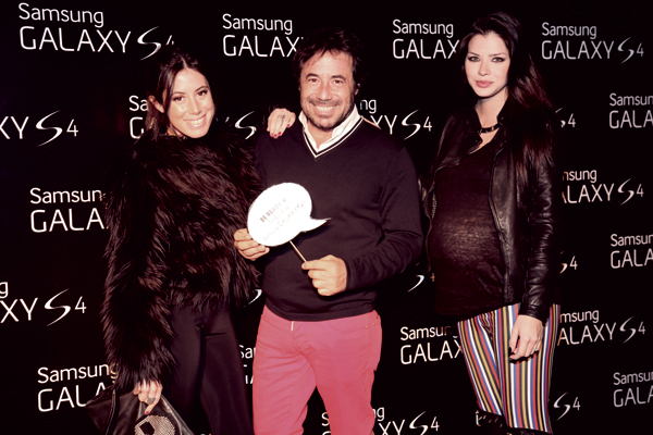 1. La artista Sofía Sarkany, el diseñador Ricky Sarkany junto a la China Suarez en el lanzamiento del Galaxy S4.