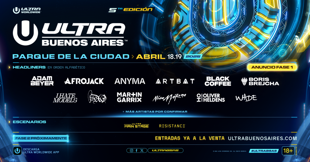El Festival Ultra Buenos Aires anuncia el line up de la Fase 1 para la edición 2025! Abril 18 y 19 del 2025 en el Parque de la ciudad!!!