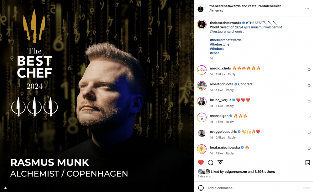 Los chefs fueron reconocidos con un cuchillo categoría Excellent y dos cuchillos categoría World Class. El chef dinamarqués Rasmus Munk del @restaurantalchemist de dos estrellas Michelin fue coronado con tres cuchillos y en la categoria The Best 2024!