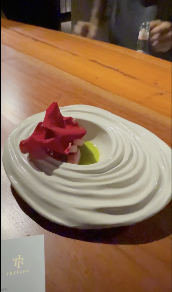Trescha es una experiencia de Chef Counter para solo 10 comensales. Es un espacio único en el que se puede vivir el fine dining de una manera diferente, con platos que reflejan la singularidad y la experiencia de su chef y una selección impecable e internacional de vinos que descansan en dos amplias cavas. Además del salón principal en el que los comensales se sientan en una barra que les permite interactuar directamente con la cocina, el lugar cuenta con una Test Kitchen, el area de I+D que es el verdadero corazón del proyecto. El restaurante fue reconocido en su primer año con una de las primeras siete estrellas Michelin de Argentina, además del premio Young Chef Award entregado a Tomás Treschanski.