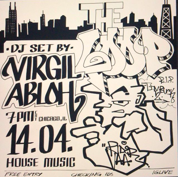 Eflyer Chicago Old School en el instagram de @VirgilAbloh anunciando su dj set.