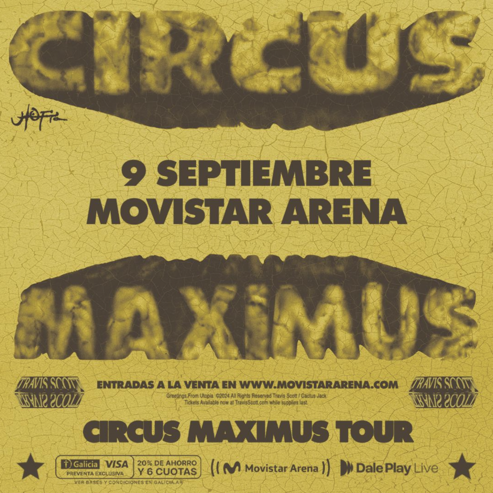 La superestrella internacional Travis Scott anunció hoy que llevará su CIRCUS MAXIMUS TOUR a América Latina, Australia y Nueva Zelanda con shows en estadios en Buenos Aires, Río de Janeiro, Ciudad de México, Sídney, Melbourne, Auckland y más. Así, para la euforia del público argentino, se presentará en el país el próximo 9 de septiembre en el Movistar Arena.