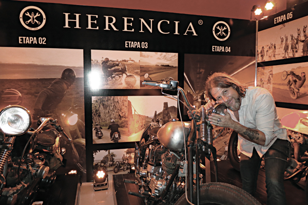 El rider Bonomi junto a su adorada moto clásica.