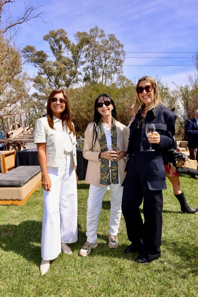 Los invitados disfrutaron un exquisito asado en los jardines de la Bodega Riglos/Huarpe en Lujan de Cuyo después de la inaguración del Fragmento del Muro de Berlin intervenido. Cecilia Nobili de Werthein , Laura Batkis y Cynthia Werthein en los jardines de la Bodega Riglos/Huarpe.