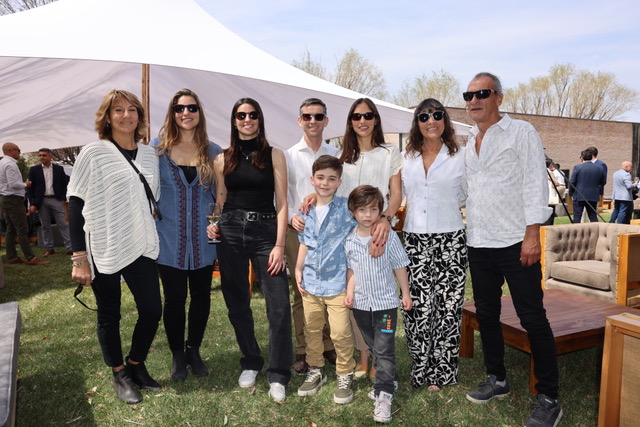 Dario Werthein y su hermana Cynthia Werthein, leyeron una carte del embajador alemán en la Argentina junto Alfredo Cornejo Gobernador de Mendoza y después posaron junto a los artistas, politicos mendocinos y los hermanos Toso de las bodegas Huarpe/Riglos.