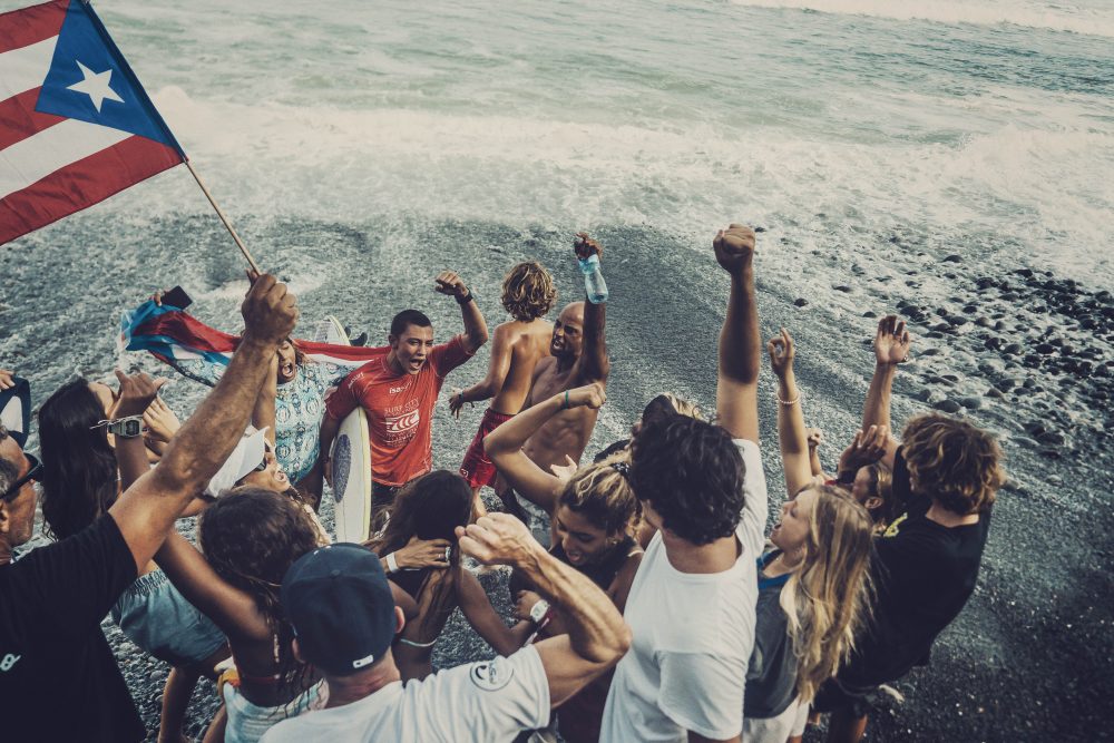 “Otro día de actuaciones increíbles y olas increíbles. Siempre es difícil ver eliminados a los atletas, pero todos son héroes nacionales. Pero lo que es único acerca de estos eventos es que todos pueden participar como fanáticos animando a su propio equipo.
