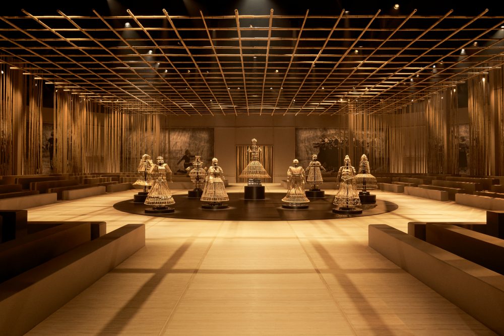 Las modelos se mueven entre un decorado ideado por la artista india Shakuntala Kulkarni, que explora el cuerpo femenino y su relación con diferentes espacios. Las miradas transmiten la fuerza radiante de una sociedad pluralista, autónoma, y una feminidad versátil, reactivando ese momento clave de libertad creativa del que Miss Dior es emblema.