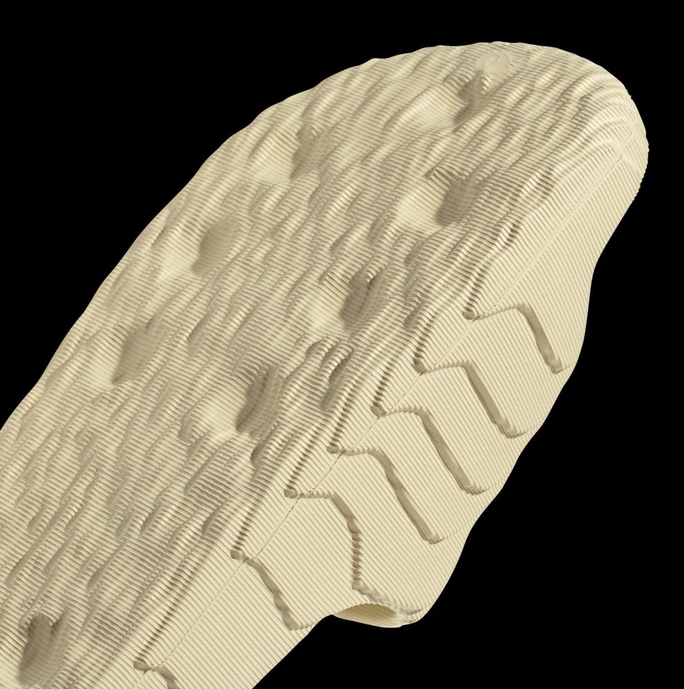 Este modelo posee una plantilla contorneada, hecha de una sola pieza y una suela exterior de goma suave y acolchada, brindando comodidad y confort a toda hora. De textura geométrica, la silueta presenta una forma ondulada y texturizada con surcos verticales y ondulaciones distorsionadas, similar al suelo del Planeta Rojo. Esta colección está pensada con el fin de ayudar al planeta y terminar con los desechos plásticos, ya que está hecha con materiales naturales y renovables, con EVA derivada de la Caña de Azúcar, hecho con 25% de base biológica.