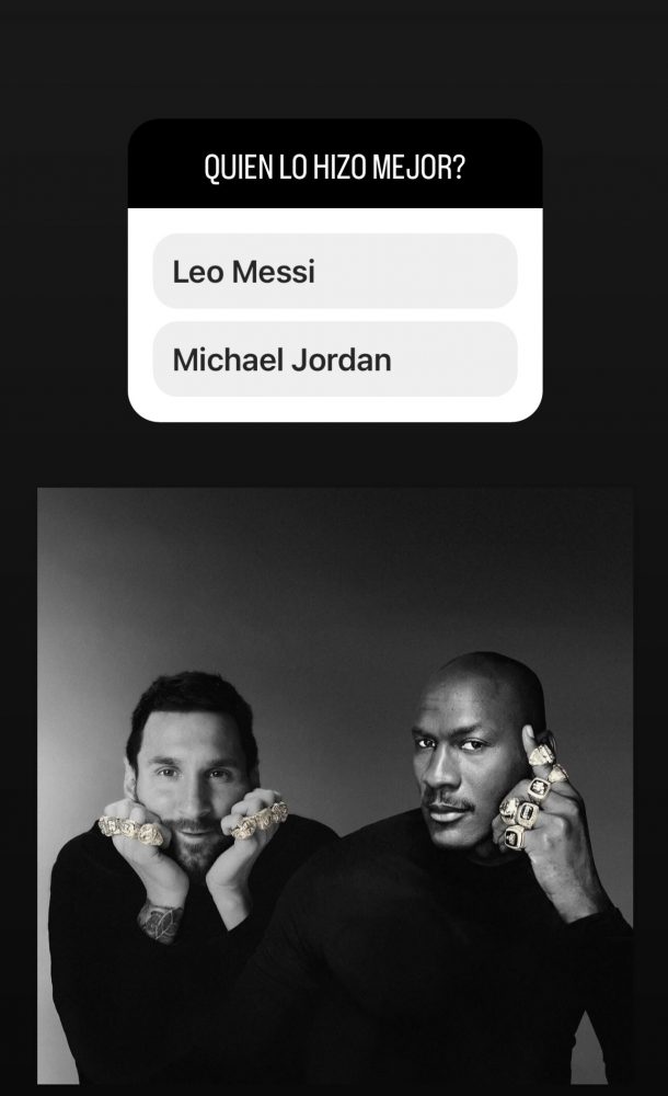 Mucha gente pensó que imitaba la famosa foto del Basquetbolista Michael Jordan y sus seis anillos, que es otro atleta considerado G.O.A.T por la prensa especializada. Y aunque esta foto esta presente en la mente de los amante de los deportes .
