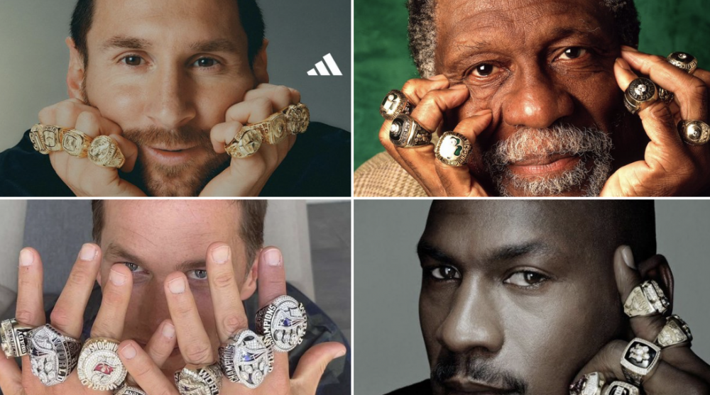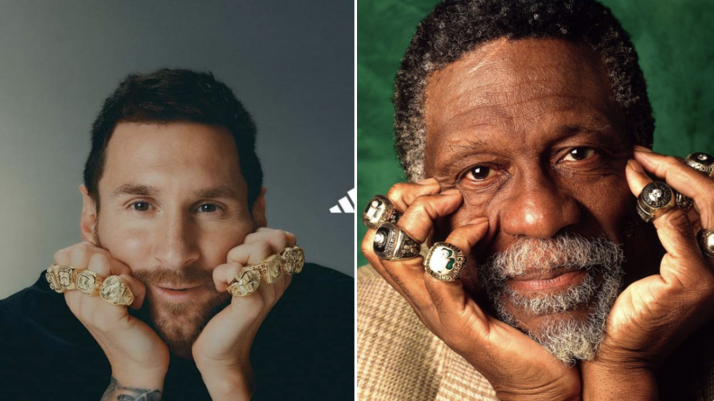 Los gestos y pose de Messi y sus ocho anillos son casi idénticos y es como un homenaje a la foto de otro basquetbolista llamado Bill Russell que en los años 70 y 80’s se sacó una foto con 8 de los 11 anillos que logró en la NBA.