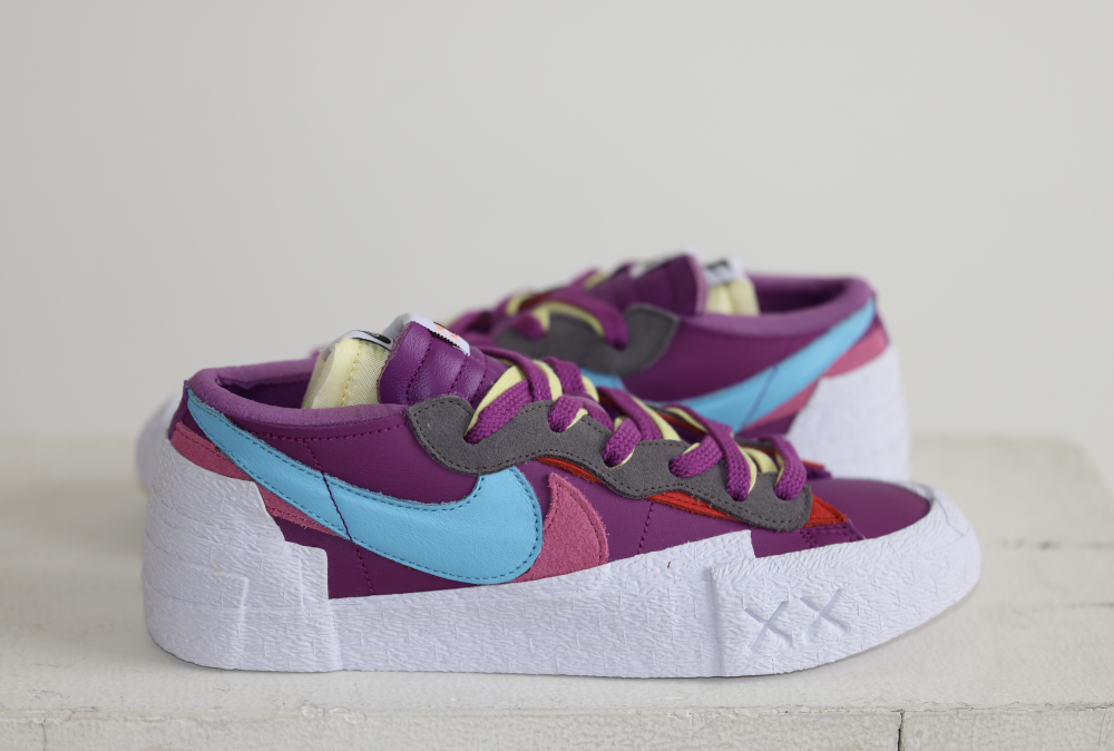 Nike quiere imponer este año la silueta de las sneakers blazer tanto en low como hi y unen fuerzas nuevamente con Chitose Abe la diseñadora japonesa de la marca Sacai quien remiso las blazer y en esta ocasión se sumo Brian Donnelly (AKA Kaws), para colorearlas en violeta , rosa, celeste y gamuza marrón e incluye su firma de las dos XX y el resultado es espectacular.