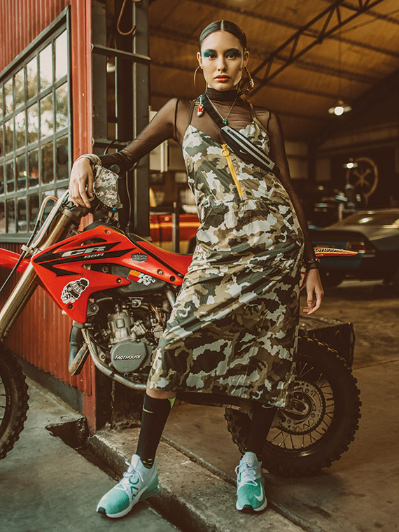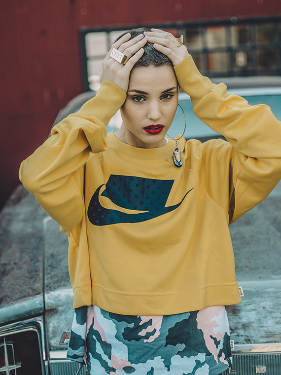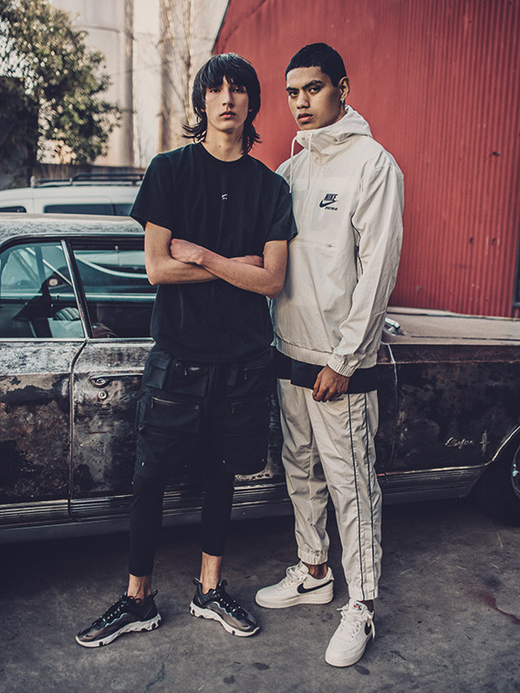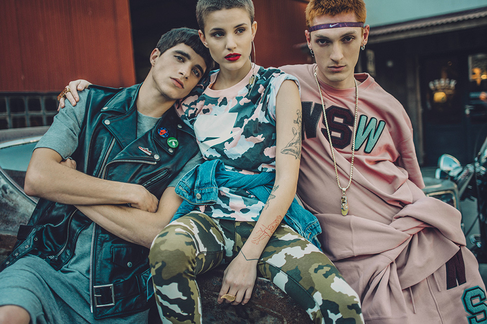 Nike Sportswear nos vuelve a sorprender con Sport Pack, una colección vanguardista que fusiona muchas de los estilos más candentes de las tribus urbanas: como el camo, la logomania en grandes letras de chenille con siluetas disruptivas y novedosas, inspirada en la energía y emoción del deporte. Amamos el logo de Nike Spotswear Futura, diseñado por Rick Hendry que simplifica la marca con un bloque y el swoosh. Y tenemos que resaltar el increíble desarrollo textil juxpapuesto en los de las prendas que nos inspiró a hacer esta producción.
