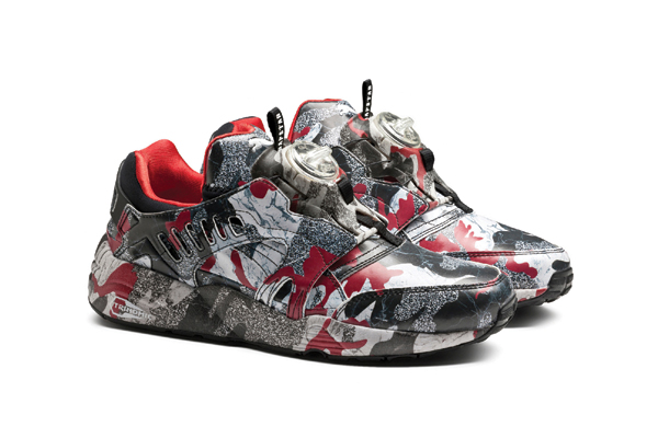 En esta alianza se fusiona su visión de streetwear con las inspiraciones deportivas icónicas de Puma, donde tonos rojos oscuros, sutiles detalles contrastantes y elementos atléticos actualizan diseños que son familiares. La Puma Disc se presenta en un total print camuflado, dándole un cambio dramático a la silueta. Acompaña esta silueta una colección de indumentaria con estampas y contrastes.