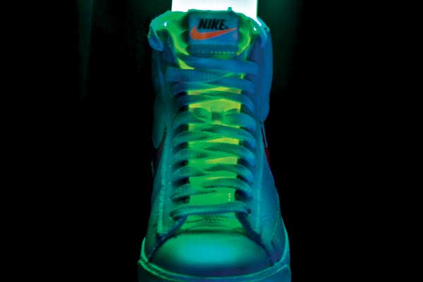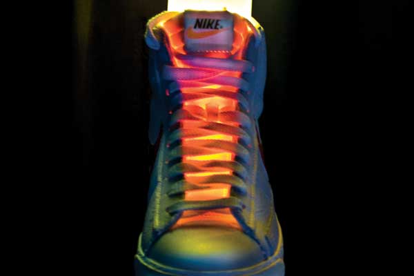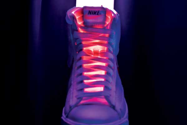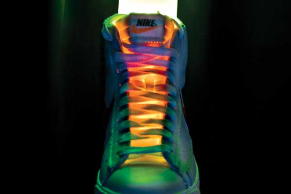 Experimento lumínico. Y amor a la zapatilla. Cosas que todos queremos tener brillan con otra luz. “Neon lights, shimmering neon lights”: ¡lo decía Kraftwerk!