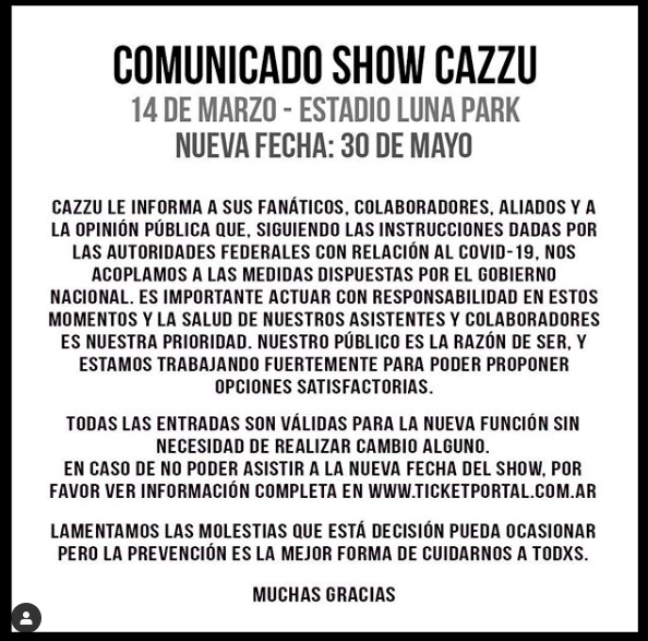 Cazzu reprograma su show en el Luna Park para el 30 de Mayo por el corona Virus