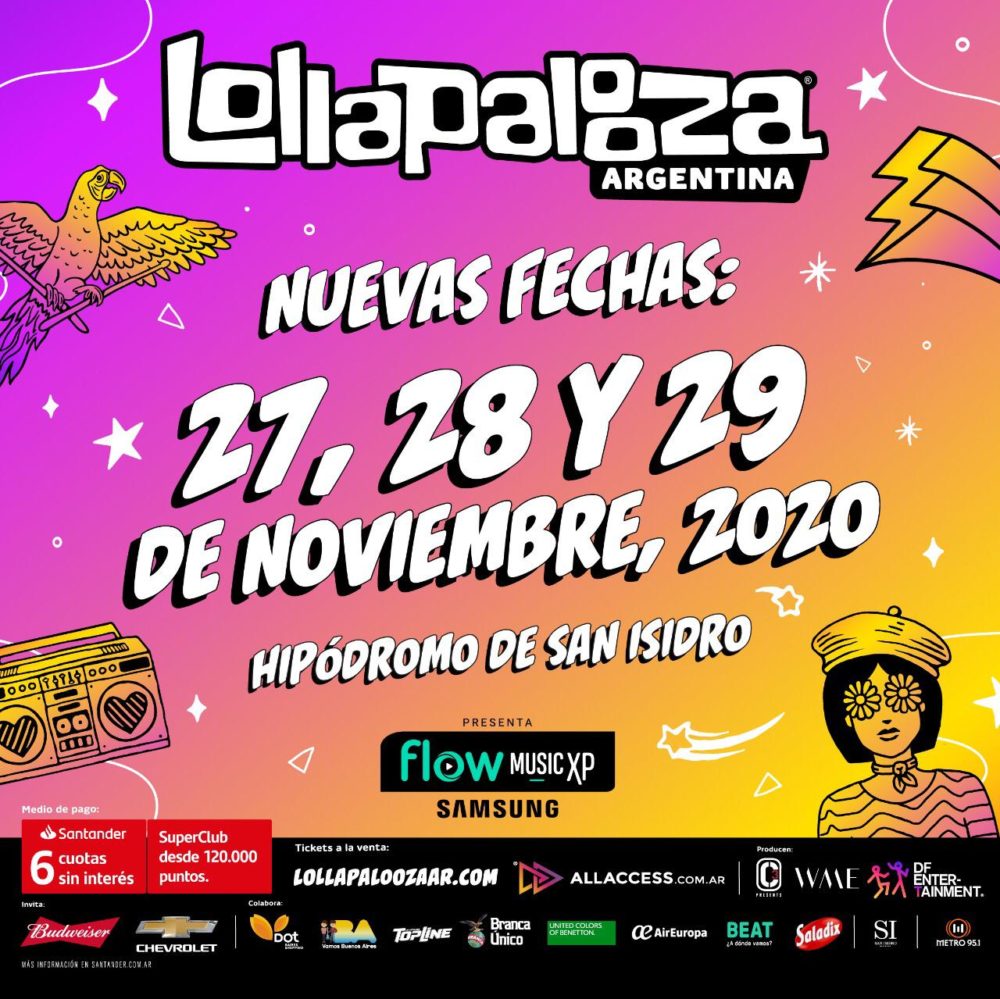 Lollapalooza Argentina 2020 nuevas fechas 27, 28 y 29 de Noviembre