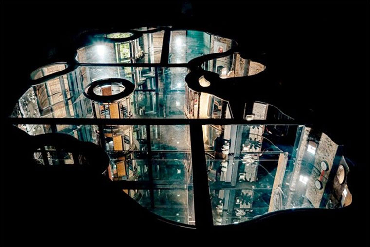 El Pabellón Filipino se configuró como un archipiélago, con tres islas de acero, espejos y vidrio. Arkipelago es lo más ambicioso de Justiniani dentro de su serie Infinity. El espacio oscuro donde se encuentra la exhibición es un mundo con un contorno familiar que, a su vez, revela diferentes capas y universos; donde aparecen objetos resaltados a través de su percepción y replicación infinita, de forma espectacular, mágica. A su vez se percibe una sensación de precariedad y fragilidad en estas construcciones. Todo parece flotar en una luz líquida mientras los cuerpos se disuelven en la oscuridad, parecen desintegrarse al caminar sobre el vidrio, tan propenso a quebrarse.