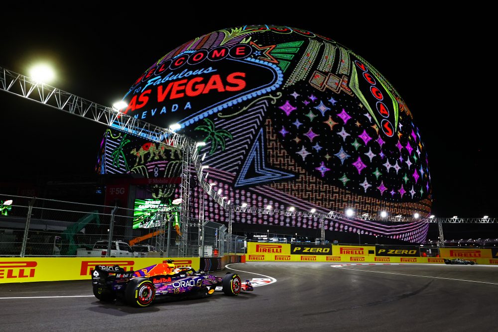 LAS VEGAS, NEVADA – NOVEMBER 17: Max Verstappen of the Netherlands driving the (1) Oracle Red Bull Racing RB19 on track during practice ahead of the F1 Grand Prix of Las Vegas at Las Vegas Strip Circuit on November 17, 2023 in Las Vegas, Nevada. (Photo by Mark Thompson/Getty Images) // Getty Images / Red Bull Content Pool // SI202311171588 // Usage for editorial use only //