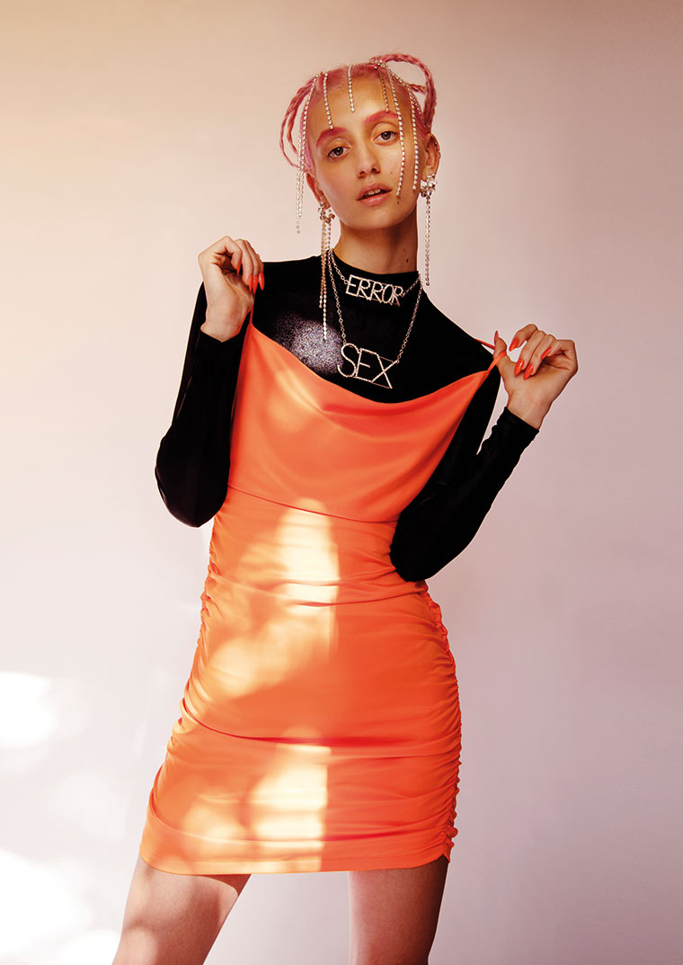 aros VENUS STRASS dorado chocker SNAKE bañado en oro, Oculttoo polera naranja Las Pepas falda Moschino, BIMBA Vintage