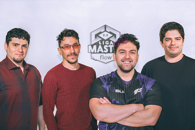 Carlos (director deportivo Liga Master Flow), Zombyra (Caster/Relator Liga Master Flow), Filopo (jugador del team 9z de League of Legends) y Fisher (entrenador del team 9z de League of Legends)