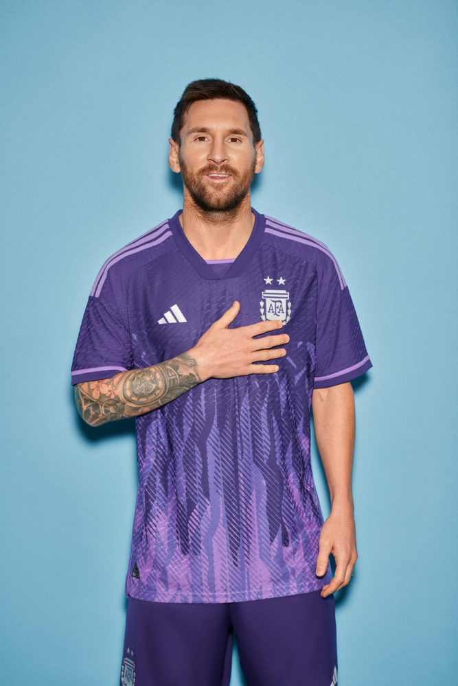 adidas presenta hoy la nueva camiseta alternativa que la Selección Argentina de fútbol vestirá en la Copa del Mundo de la FIFA 2022 que se realizará en Qatar a partir del 20 de noviembre de este año. Por primera vez en la historia, Argentina presenta un diseño en tonos violetas, inspirada en la igualdad de género, una iniciativa que promueve los valores de diversidad e inclusión. Además, la casaca también posee elementos que refieren a la identidad nacional, con el Sol de Mayo aplicado en la parte posterior del cuello y con sus rayos reflejados en la trama de la prenda.