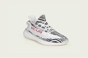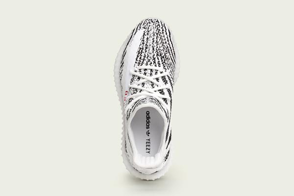Esta YEEZY BOOST 350 V2 presenta una parte superior compuesta de Primeknit blanco y negro con una sutil raya contrastante en color blanquecino, una marca “SPLY-350” reflejada, una costura central distintiva y una tira de talón.