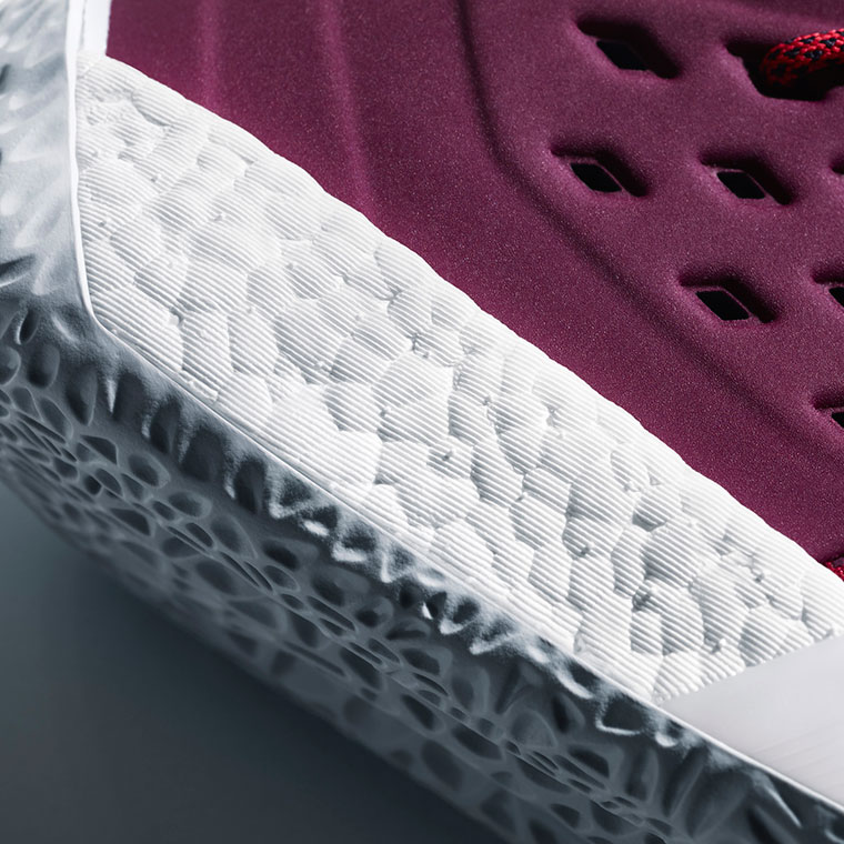 La amortiguación del calzado es enteramente de BOOST, y está diseñada con una base ancha en la parte de atrás del pie para crear postura y proveer una mejor plataforma de balance. Ranuras en el pie medio albergan una placa de estabilidad para reforzar el control de torsión, mientras que la talonera de la silueta asegura durabilidad y balance.
