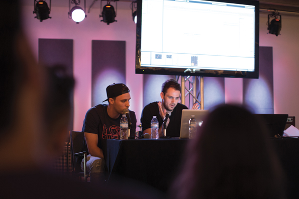 Los Dj y músicos holandeses “W & W” en la clínica de producción musical de la Armada Music Academy.