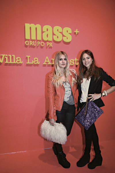 Mica y Cande Tinelli en el stand de Grupo Mass en ArteBA.