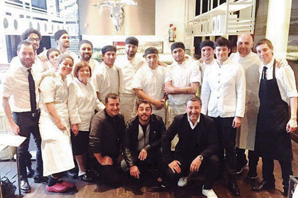 El Masterchef Germán Martitegui y su equipo junto a los hermanos Roca en el restaurant Tegui.