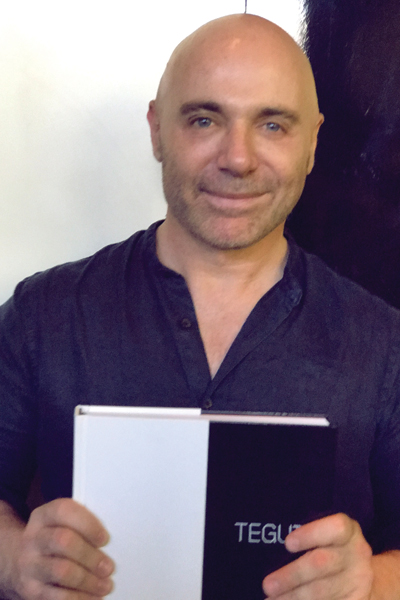 El fotógrafo Marcelo Setton con su obra en el libro “Tegui”.