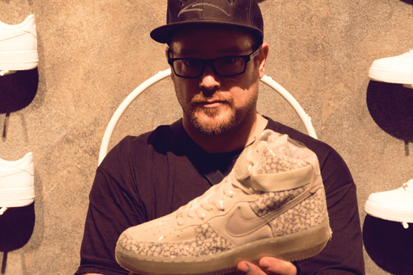 El graffitero neoyorquino Stash junto a sus muy buscadas remix de las Zapatilllas Nike Air force Hi.