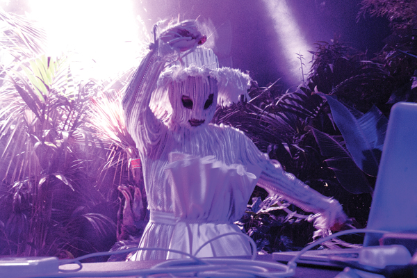 Bjork vestida por Marlou Brels para su dj set en el sonar 2017, foto x Santiago Felipe.