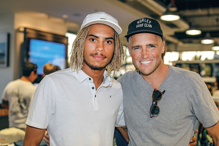 El surfer jamaiquino Shama Beckford y el surfer californiano Punker Pat en la presentación de Hurley Woman en California.