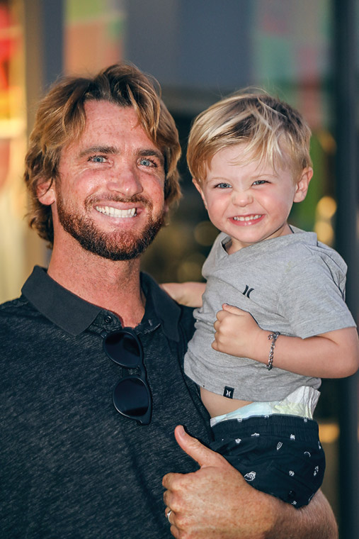 El surfer Brett Simpson y su hijo en el Hurley Store Pacifico en Huntigton Beach California.