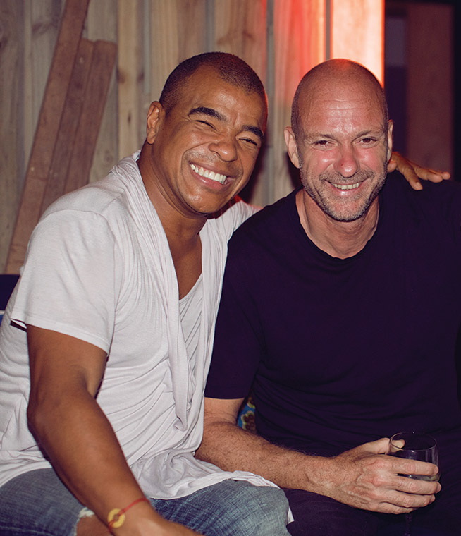 El productor Erick Morillo y el hotelier Giuseppe Cipriani en el cumpleaños de Nadina Pharaon en La Caracola.