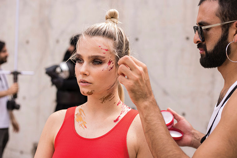 Backstage de fotos con Valentina Zenere, con la make up artist Jazmin Calcarami.