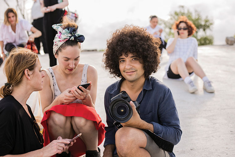 La productora Bernardita Fernandez Alonso, la make up artist Jazmin Calacarami y el fotógrafo Fausto Elizalde en el back de fotos.
