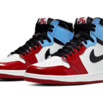 Manteniéndose fiel a las primeras 3 combinaciones de colores de charol aplicadas a las Air Jordan I, esta iteración de ‘Fearless Ones’ combina el university blue y el gym red en la parte superior, luego lo resalta con el negro / dorado en el logotipo de las alas con efecto metalizado. La última línea del discurso de MJ y una versión tachada de la palabra «FEAR» están estampadas en las medias suelas.
