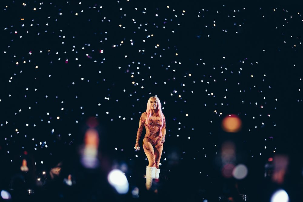 Después del dj set de Agudelo 888 subió el plato fuerte de la noche Karol G o La Bichota subió al escenario en el Estadio Vélez de Buenos Aires con su “Mañana Será Bonito Tour” desatando la locura en dos noches majestuosas con entradas agotadas, que recorrieron sus mayores éxitos conectando de manera muy especial con el público. Además contó con Nathy Peluso como gran invitada, siendo la primera vez que ambas cantan juntas en vivo.