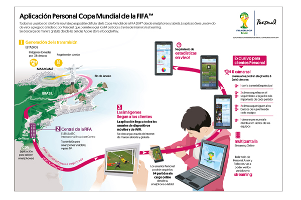 Personal, la mayor empresa de comunicaciones móviles de la Argentina, ofrece la aplicación Personal Copa Mundial de la FIFA™ que se destaca por su completa transmisión de contenidos de FIFA y que puede ser descargada gratuitamente por todos los usuarios de telefonía móvil, sin importar el operador que utilice.
