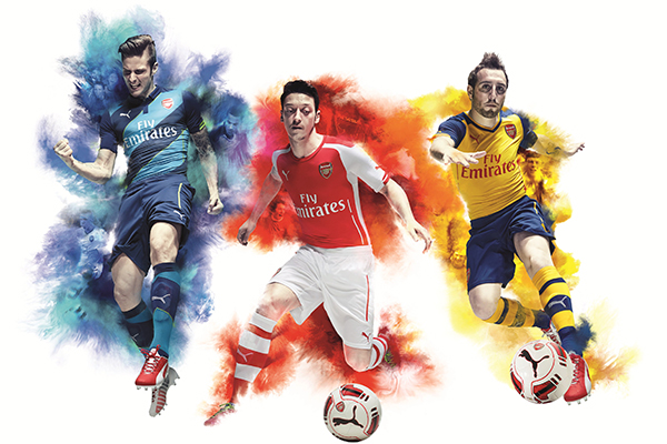 Presentados en una impresionante proyección de 20m en el agua en el Río Támesis visto desde el Banco Norte, transformando el “EDF Energy London Eye” en el icónico Clock End de Arsenal. Los aficionados pudieron ver a Arsène Wegner contra los valores que inspiran la historia detrás de “Future, Forever, Victorious” que definen la campaña de PUMA y Arsenal, “Stronger Together”. Los seguidores del Arsenal que esperaron para comprar su nueva camiseta en la tienda PUMA de Carnaby Street en Londres se llevaron una gran sorpresa al ver que Mikel Arteta, Santi Cazorla y Mathieu Flamini develaron las diferentes camisetas en las vitrinas del local. Dentro de la tienda, los fanáticos también se pudieron tomar una fotografía con el más reciente galardón del equipo, la Copa FA.