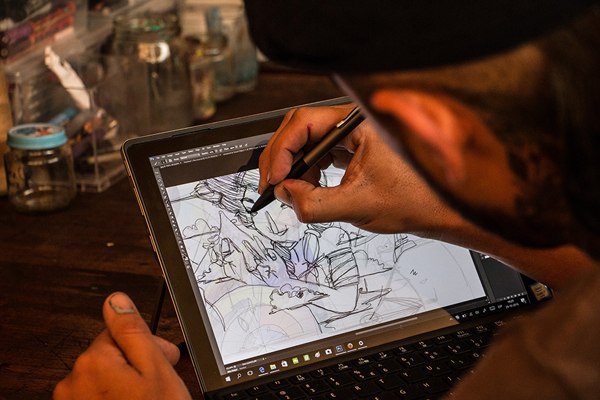 El mural comenzó en Brasil, donde Nove utilizó un dispositivo 2 en 1 comenzó a trabajar en los bocetos de su arte para después pintar el mural de manera física.