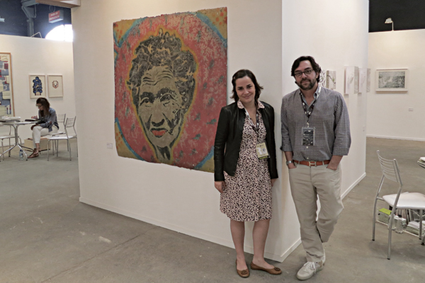 Camila Siqueria junto a Eduardo Leme de Galería Leme frente a una obra de Martinat en la 2da edición de ArtRío.