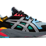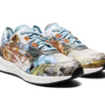 El color general del celadón restaura adecuadamente los ricos colores de la pintura al óleo del siglo XVIII, mientras que los cordones de peltre, la raya de tigre naranja brillante, el delicado adorno de la hebilla del zapato y el colorido logotipo del orbe en el talón del zapato aportan un aspecto gráfico modernista a la zapatilla.»HyperGEL» contiene el material absorbente de golpes «GEL» en una esponja de PU suave, logrando una alta resistencia mientras sujeta el cojín con dos materiales que tienen propiedades opuestas, dando al usuario un aspecto verdaderamente único y un ajuste cómodo.
