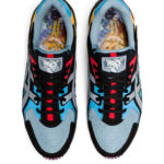 El material de malla en estallidos de colores primarios se sienta contra el ante sintético negro con rayas ASICS reflectantes de 3M, lo que le da un aspecto gráfico a la arquitectura del entrenador. Como detalle adicional, la pintura de François Boucher con Daphnis & Chloe, 1743, está impresa en la plantilla de la zapatilla de deporte.