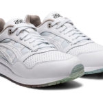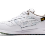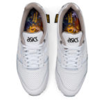 La zapatilla GELSAGA ™ está diseñada para contrastar con la zapatilla HyperGEL-LYTE ™, diseñada en cuero blanco limpio, con la pintura Daphnis & Chloe Boucher impresa en la base translúcida del entrenador con el distintivo logotipo de colaboración.