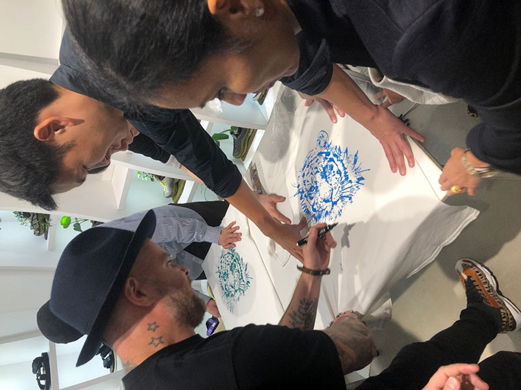 Una exposición emergente y una colab se lanzó en Tokio el sábado 13 de julio en la nueva galería de atmos Sendagaya. La exposición está disponible para ver por otras cuatro semanas. En esta exposición individual en Japón, se exhiben una serie de raras ediciones a prueba de artistas y impresiones 1/1 con hojas de oro de 24 quilates y polvo de diamante.